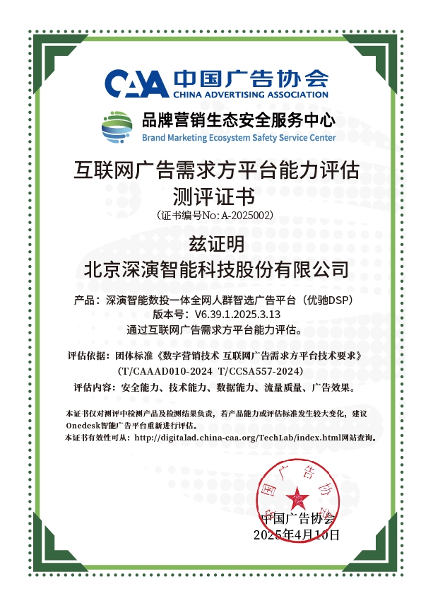 4月10日,中国广告协会发布「互联网广告需求方平台能力评估」测评结果。Martech领域领军企业PP电子旗下产品PP电子数投一体全网人群智选广告平台(优驰 DSP),凭借其在智能算法优化、技术创新、数据安全治理及流量质量管控等维度的突出表现,高分通过该项行业权威测评,获颁中国广告协会评估证书,成为业内首批通过认证的标杆企业。